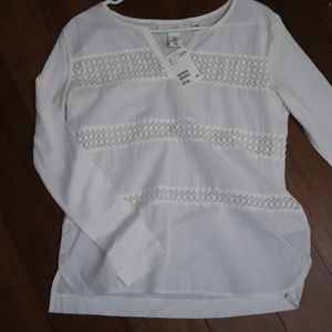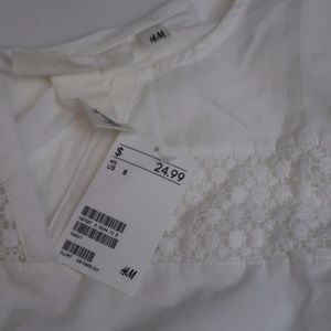 White Lace Trim Cotton Modal Blouse Top S