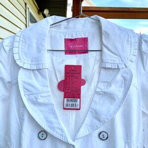 White Lace Trim Cotton Trench Coat - a. YiLian 阿依莲 Lolita Style