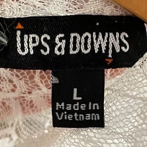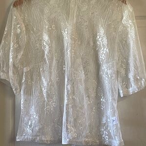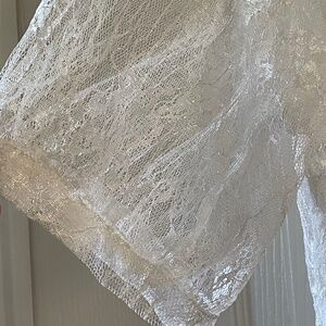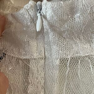 White Lace ultra-feminine top mock turtleneck short sleeves Sz L Zipper back