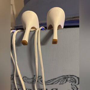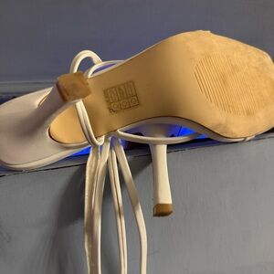 White Lace-Up Strappy Stiletto Heels Sandals Size 8 Square Toe