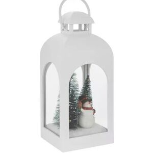 White Lantern with Snowman and Christmas Tree Light Up Mini Lantern With Snowman