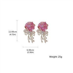 White Large Flower Decor Faux Pearl Tassel Earrings