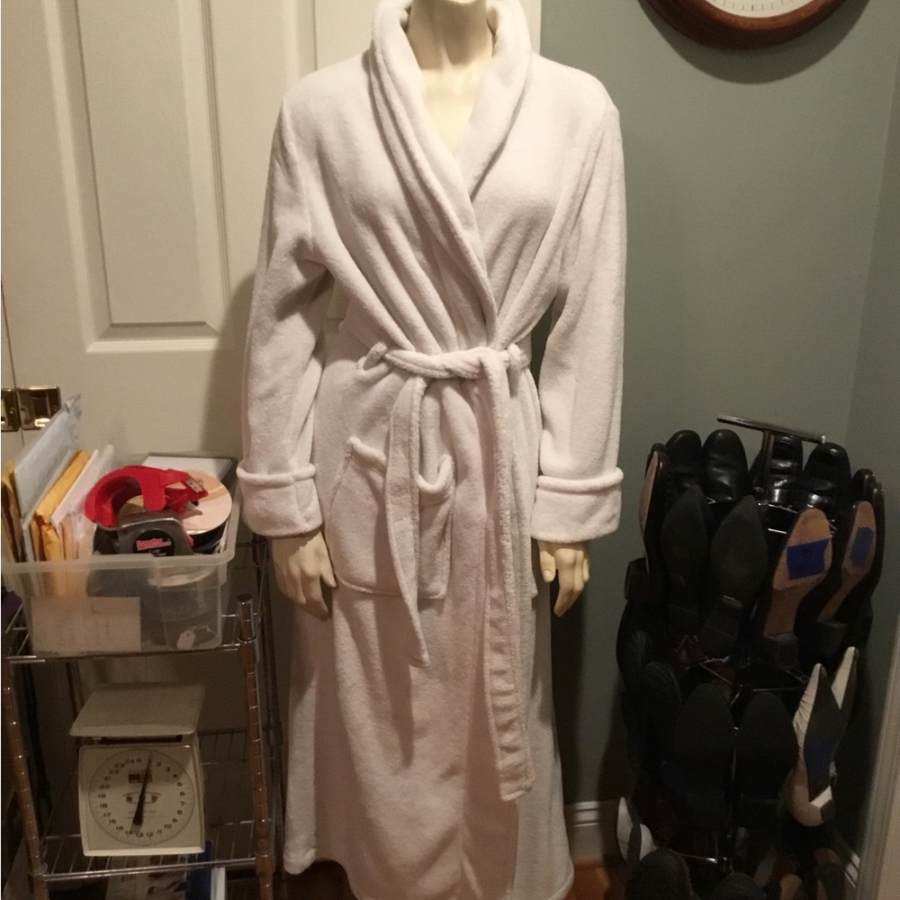Wonderful white robe in good condition to keep you warm & comfortable this winter as enjoy mine so much but don’t need two. Unpacking from moving found had two so someone else can enjoy it. Weight is 3 1/2 pounds.