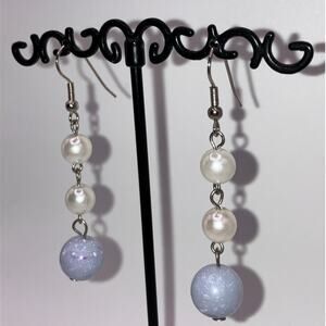 White & Lavender 3 Beaded Silver-Tone Dangle Earrings!