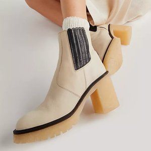 White Leather Free People James Chelsea Heeled Boots in Bone