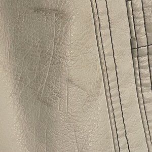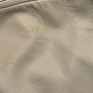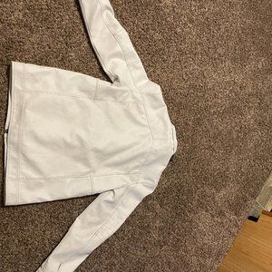 White Leather jacket. few scuffs from light wear but barely worn otherwise. hoodie underneath but it's pretty thin so if wearing for winter definitely change the hoodie out.