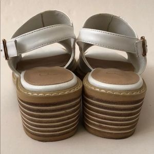 1 1/2” heels, only worn a few times. Very comfortable. Labeled size 36. But a tad snug, fits more like a 5.5. Made in Korea, no brand.
