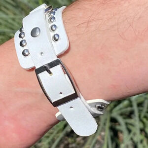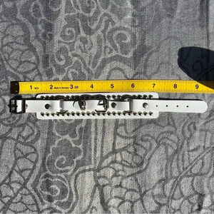 White Leather Punk Goth Rock Spike Chain Metal Stud Snap Chain Cuff Bracelet