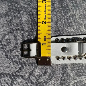 Bicast leather with metal alloy hardware. Please see photos for measurements. Model’s wrist is appx 7.25”. Bundle and save! I ship fast!