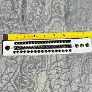 Bicast leather with metal alloy hardware. Please see photos for measurements. Model’s wrist is appx 7.25”. Bundle and save! I ship fast!