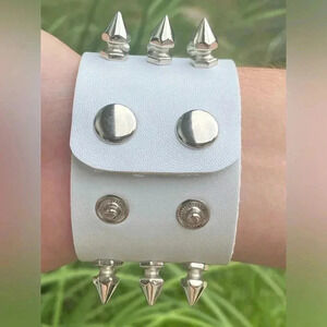 White Leather Punk Goth Rock Triple Spike Metal Stud Snap Cuff Bracelet New