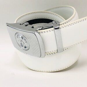 White Leather Ratchet Belt Automatic Lion Buckle Adjustable Dress Belt for Men