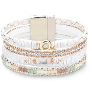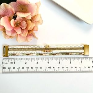 NEW WITH TAGS White Leather Wrap Rhinestone Bead Bracelet