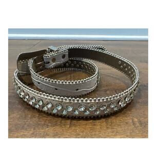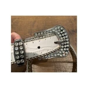 White Leather Rhinestone Embellished Beaded Belt Western White Women