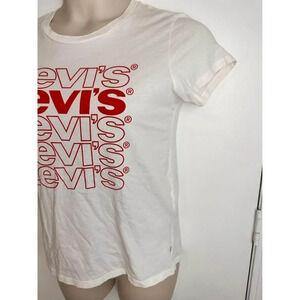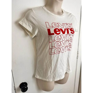 White Levis T Shirt With Red Letters Size Small #0590