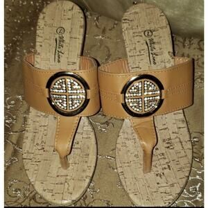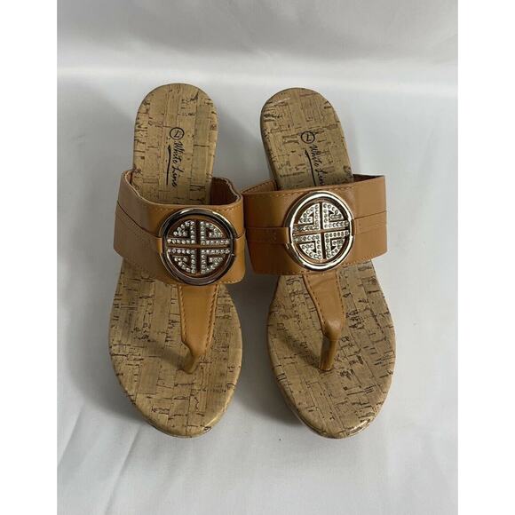 White Line Women's Slip On Faux Cork Wedges Jewel Embellished Platforms Size 7