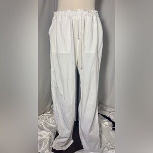 White Linen Blend Lounge Pants Women’s Drawstring Coastal Boho Minimalist Sm