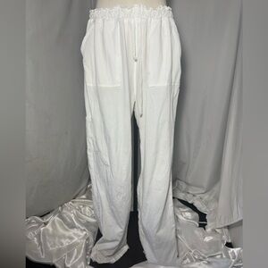 White Linen Blend Lounge Pants Women’s Drawstring Coastal Boho Minimalist XS/S