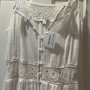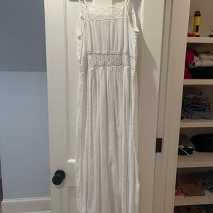 White linen maxi dress. Perfect for summer! Can be worn as a dress or cover up. Lightweight with crochet details and buttons down the front. Never worn!