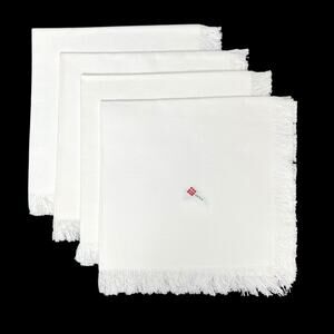 White Linen Napkins Set of 4 With Fringe Edge