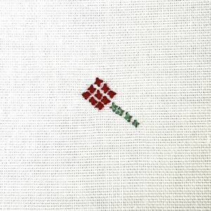 Darling embroidered cross stitch of a red and green flower
