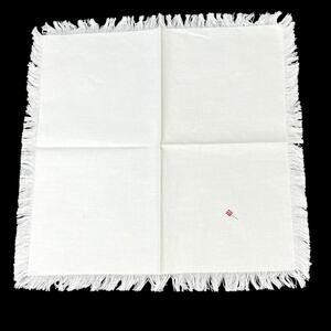 White Linen Napkins Set 4 Fringe Edge Cross Stitch Small Flower Red Green 15x15