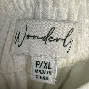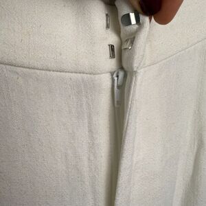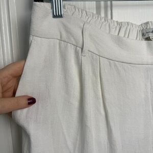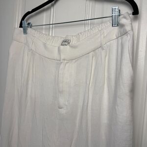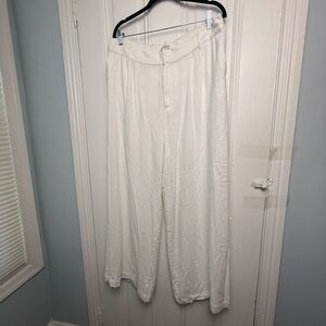 White Linen Wide Leg Pants Womens XL Petite Zip Fly High Rise Beach Pool Resort