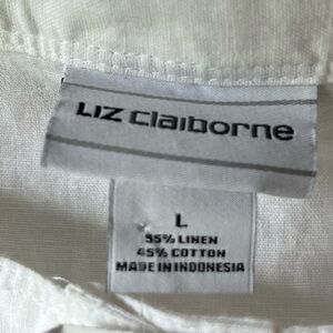 Liz Claiborne line and cotton blend dress, square neck, button front midi length. Missing belt, looks cute without or add your own depending on your style