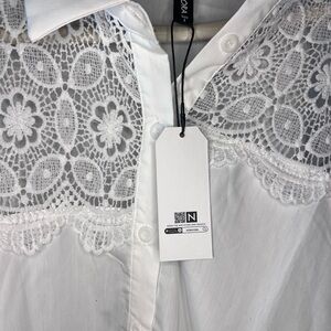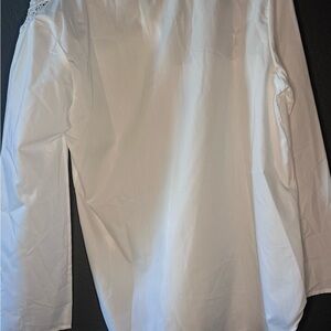 White Long Sleeve Loose Women’s Button Up Mandarin Collar Embellished Blouse