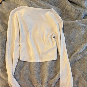 Elevate your wardrobe with this chic white long sleeve ribbed top. Perfect for any occasion, this versatile piece offers both comfort and style.