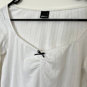 White Long Sleeve Top Scandinavian Style Womens Size S