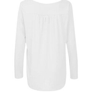 This white long sleeve top, designed for comfort, features button detailing for a touch of elegance. Its soft fabric blend offers a relaxed fit, making it suitable for casual outings or a cozy day at home.