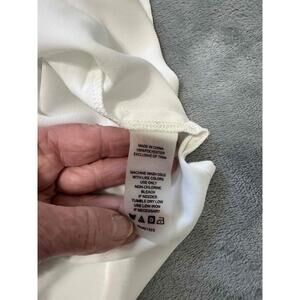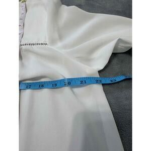 White Long Sleeves Lace Up Front Peasant Blouse Feminine Relaxed Fit Womens M