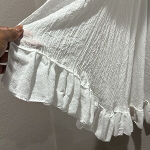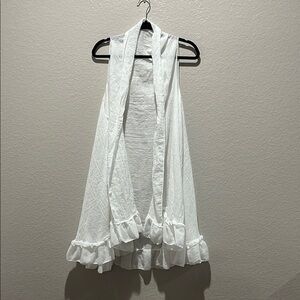 White Long Vest Layering Piece One Size Long Ruffle Hemline Sleeveless Coverup