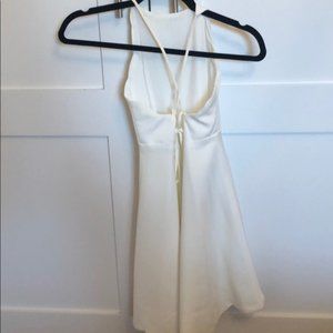 super pretty, dainty and girly. Scallop cut on the bottom and top. Low, tie back in the back. Very flattering.