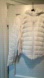 Stylish white quilted jacket with a hood. Perfect for cool weather.
