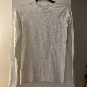White Lululemon Rest Less Pull-over with textured pattern and ribbed cuffs. Great condition, lightly worn. Size 6 (runs small).