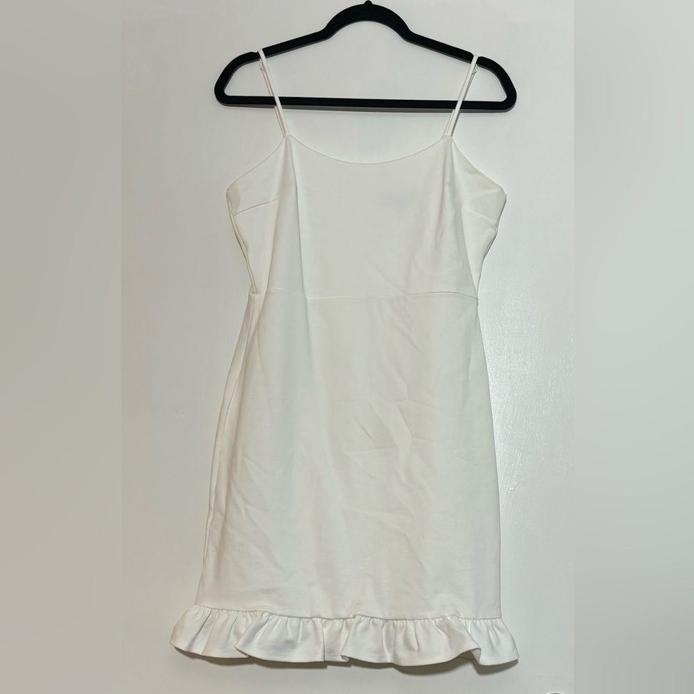 Elevate your wardrobe with this gorgeous white spaghetti strap dress from Lulu’s, featuring charming ruffle trim. Perfect for summer events, this dress was worn only once for a wedding reception, making it in excellent condition. The lightweight fabric drapes beautifully, offering a flattering silhouette that's both chic and comfortable.