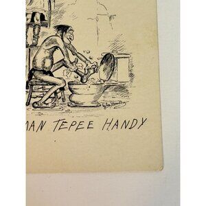 White Man Tepee Handy WM Standing Indian Artist Postcard Native American READ