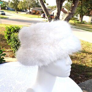 Stunning ladies white fur hat. It looks is fluffy and is very soft. Looks like fur but is 100% Polyester. Condition is superb! One size fits most. It has never been worn. Made by Shein.