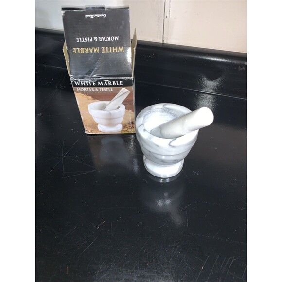 This White Marble Mortar & Pestle Set is a stylish and functional addition to any kitchen. The 4" x 4" size and 5" pestle make it perfect for grinding spices or crushing nuts with ease. The heavy-duty marble material ensures durability and can handle large quantities without seasoning. The marbled pattern adds a touch of elegance to this essential kitchen tool. Perfect for both everyday use and special culinary projects. Not seasoned.
