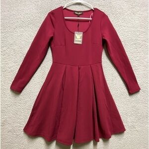 White Mark Dress Women Small Red Pleated Long Sleeve Pullover Burgundy