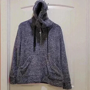 White Mark charcoal grey sherpa zip up hoodie with drawstring and pockets.