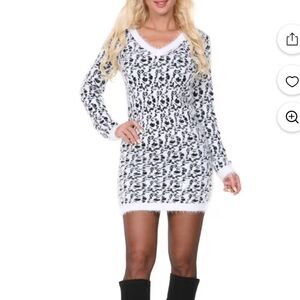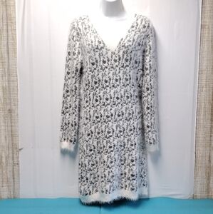White Mark Fuzzy Leopard Print Angora Sweater Dress Size XL