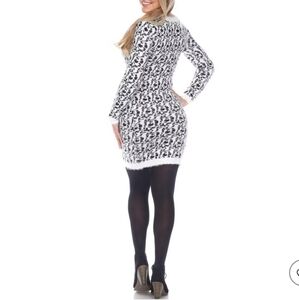 White Mark Sheath Stretch Leopard Print Angora Sweater Dress Long Sleeve - Pullover - Gray White - Size XL