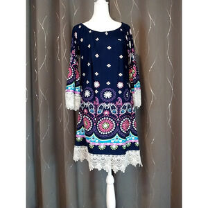 White Mark Navy Boho Blue Embroidered Tunic Dress Size Large / #3106