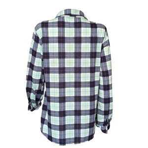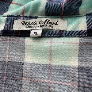 White Mark Plaid Light Blue & Navy Button-Up Shirt Long Sleeves Womens Size XL