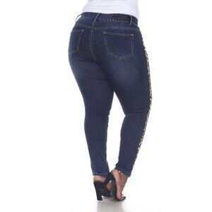 White Mark Women's Plus Size 14 Blue Super Stretch Denim Cheetah Pannel