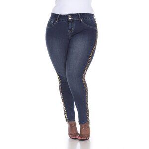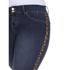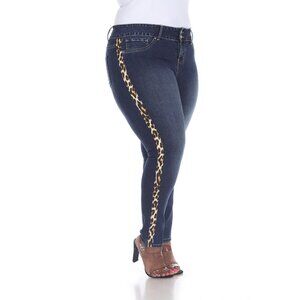 White Mark Women's Plus Size 20 Blue Super Stretch Denim with Cheetah Pannel