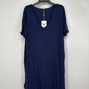 White Mark Women's Plus Size Short Sleeve V-Neck Maxi Dress Navy Size 1X NWT